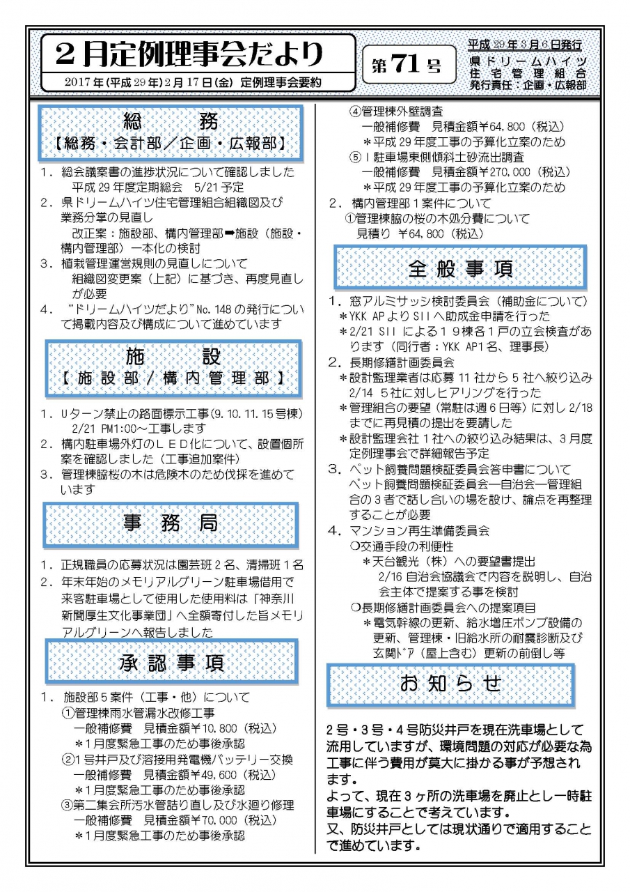 29年2月理事会だより71号